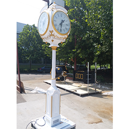 塔鐘機芯采用我公司自主研制開發(fā)的四連桿式機芯,即一臺主機帶動四臺分機運機運轉,從而很好的保證了四面塔鐘計時的同步性。
